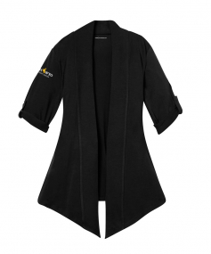 Top off your look in style with this shrug that's equally flattering paired with a skirt or jeans. 4.4-ounce, 62/33/5 poly/rayon/spandex jersey knit.